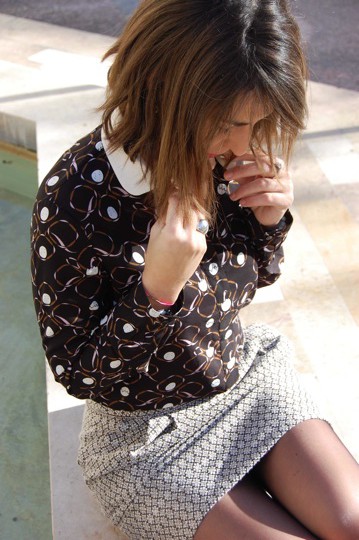 Dans le look du jour je me suis « déguisée » en dame, en sérieuse. Cela m’arrive de temps en temps pour faire mon âge. C’est n’importe quoi je sais mais j’ai souvent l’impression de faire gamine dans mon style, comparaison idiote avec des trentenaires rabat-joie sûrement. (Hihi)