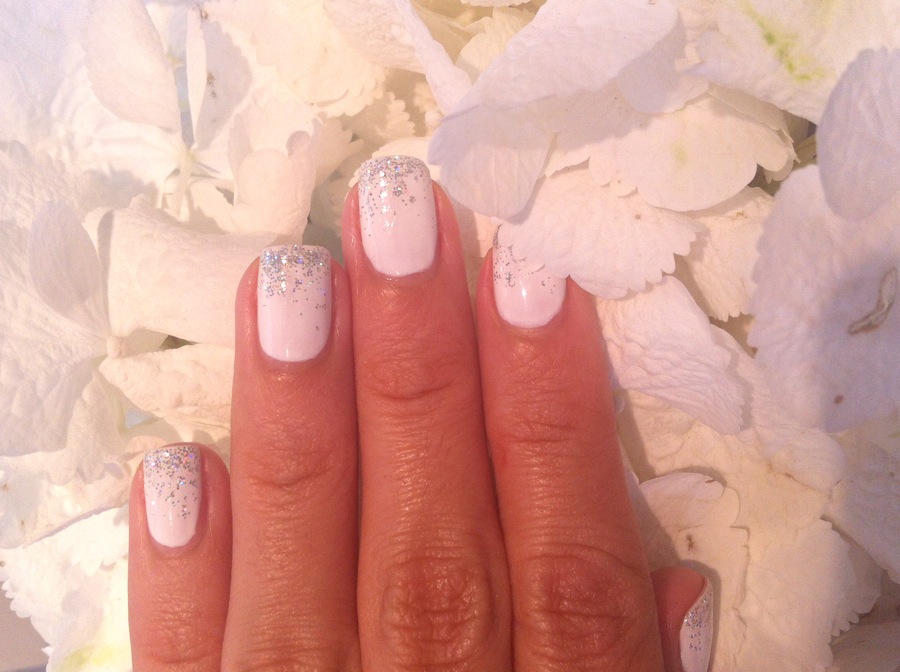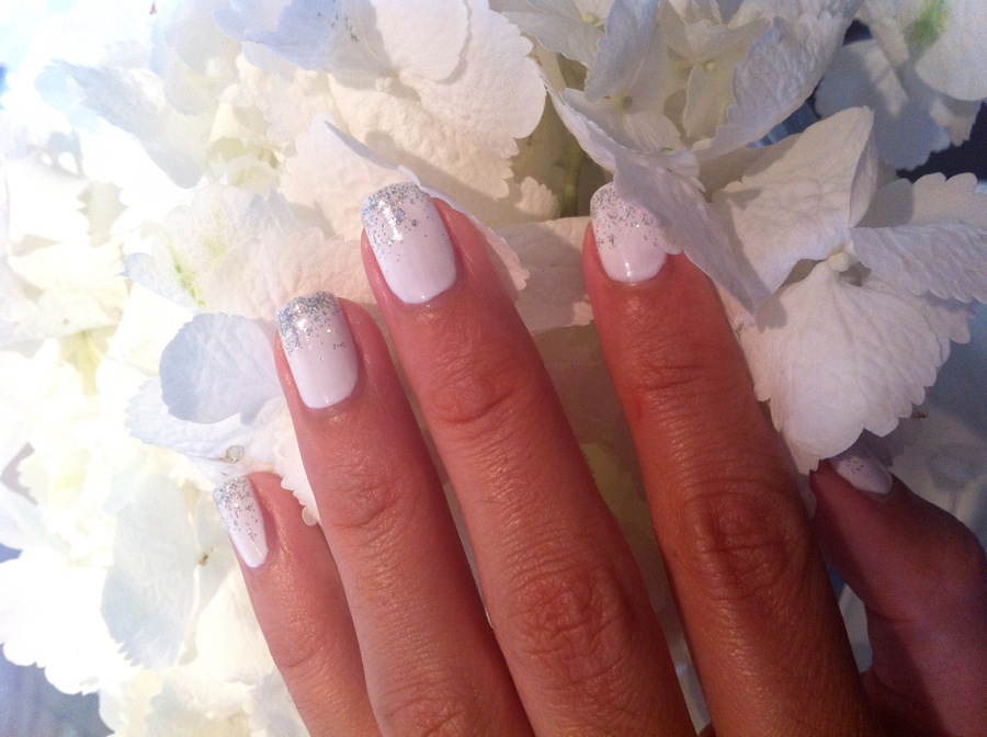 My girl friends agreed with me, this is the perfect manicure for a wedding! Sober, elegant et glittery…