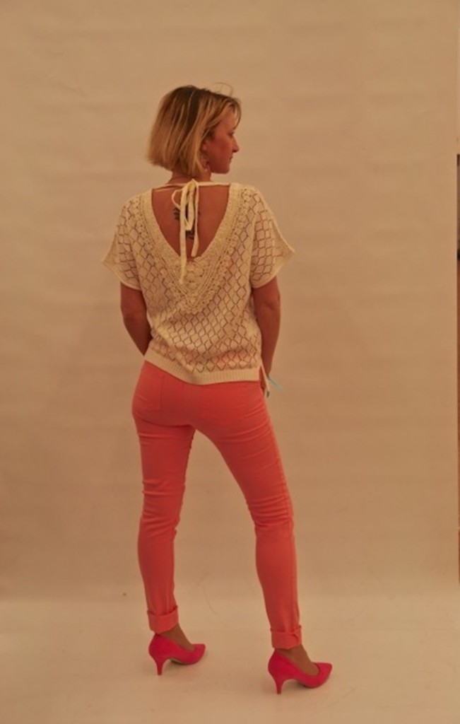 Pour ce look, je porte un pantalon saumon (9,99€) pull en maille 12,99 € et des escarpins rose à 14,99 €