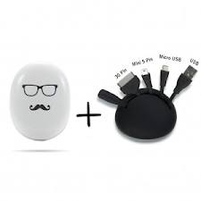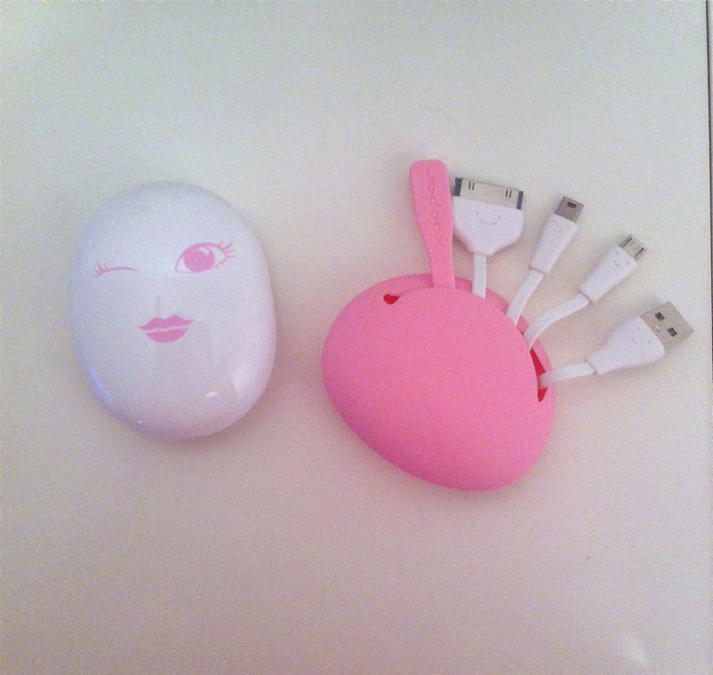 Elle est pas canon Pam? Le principe est simple, parmi les 4 cordons il y a une sortie USB que tu branches à ton ordi et une sortie que tu branches dans Pamela pour la charger. Ensuite tu la glisses dans ton sac et quand t’es à plat tu branches dans ton smartphone l’embout adéquat. Magique? Oui! Joli? Oui. Cher? Non. Enfin pas trop… Comptez 30€.