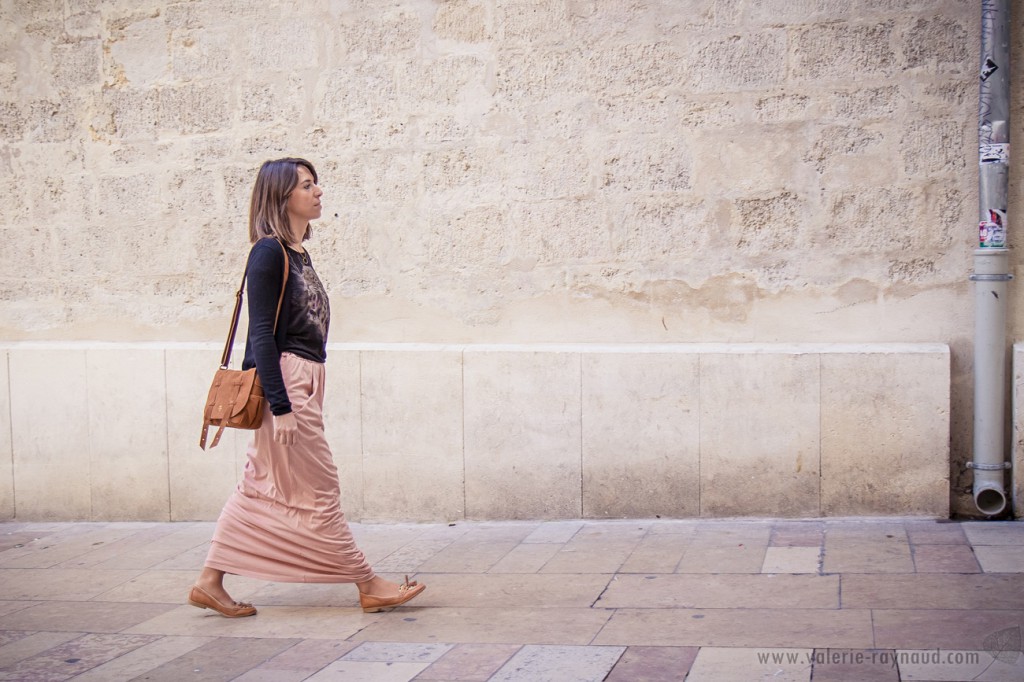 Etant petite de taille je me suis toujours dit que les jupes longues étaient faites pour les « tiges ». Vous savez ces femmes grandes, minces, élancées… Un peu comme Angelina Joli que la jupe longue habille tel un costume trois pièces. Anne m’a convaincu que non en fait, on peut TOUTES la porter!