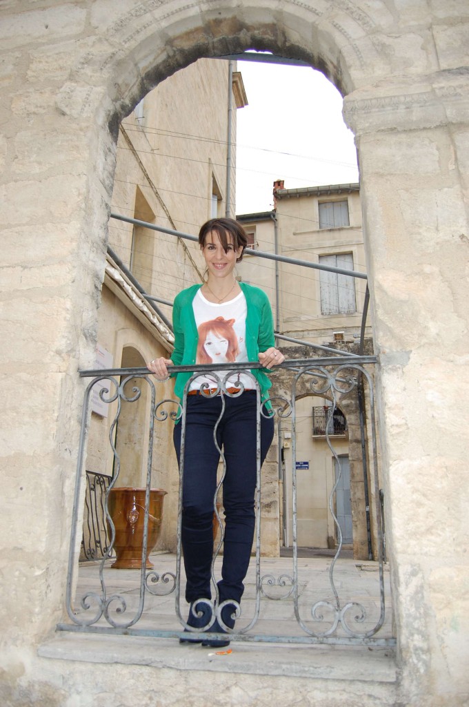 La série se poursuit avec un gilet vert. Le vert n’est pas une couleur que je porte ni comme vêtement ni sur mes ongles, ni à mes pieds, ni nulle part. Ce petit gilet est l’exception qui confirme la règle du « Jamais, Ô non jamais ». Sa coupe, sa matière et sa légèreté m’ont donné envie de le porter. Et puis c’est un vert franc, un vrai vert « herbe fraîche » encore humide. C’est presque poétique…
