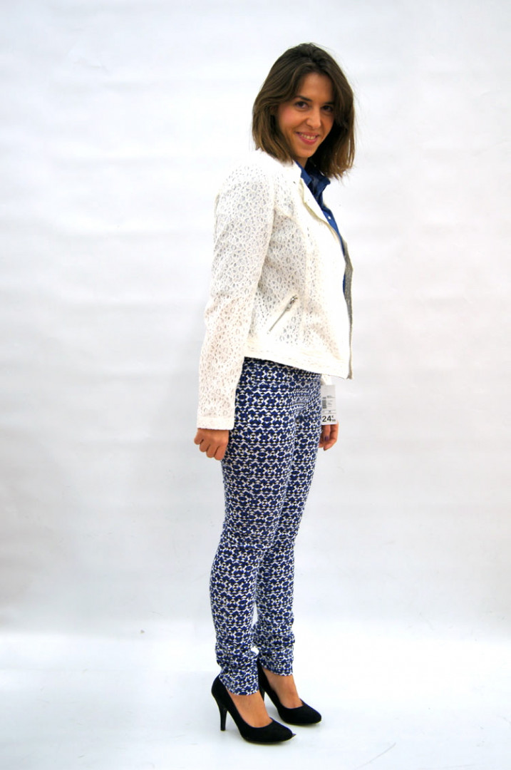 Ensuite vient la pièce sur laquelle j’ai jeté mon dévolu, un pantalon imprimé. Je pense que c’est notre virée chez Galerie Melle qui m’a rassurée dans le port d’un pantalon imprimé. Avant je n’aurai pas osé pensant que cela me grossirait ou n’irait pas bien avec ma morphologie. Finalement j’adore parce que cela permet de mixer les styles!