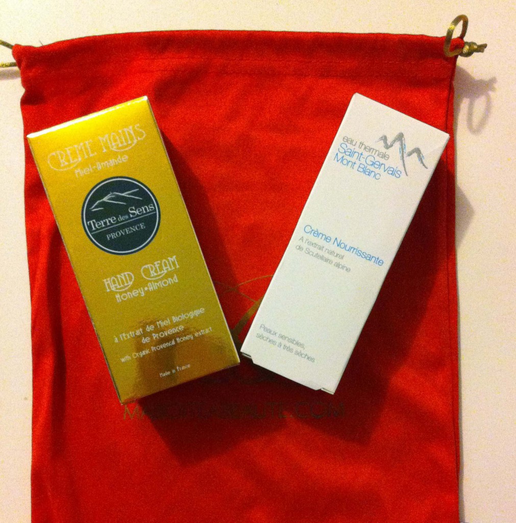 A ses côtés, une crème nourrissante pour le visage de Saint Gervais Mont Blanc. Un soin apaisant et cicatrisant qui convient aux peaux sèches, voire très sèches. Elle rejoindra sûrement un colis surprises sous le sapin car ma peau est plutôt grasse en ce moment… Il semble être un soin de qualité à l’eau thermale pure.
