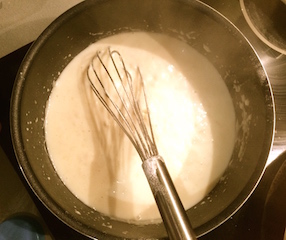 -Première étape, je coupe mes aubergines en tranche.aubergine– Je prépare ma béchamel de la façon suivante:  Faites fondre le beurre à feu doux. Ajoutez la farine. Délayez sur le feu pendant quelques secondes jusqu’à ce que le mélange soit mousseux. Ajoutez  le lait peu à peu en remuant. Salez et poivrez, mélangez jusqu’à épaississement. béchamel– J’ai  pelé et coupé en lamelles mes oignons avant de les faire revenir dans une grande poêle . Après avoir légèrement fait dorer mes oignons, j’y rajoute ma viande hachée que je laisse cuire une bonne dizaines de minutes à feu doux et y ajoute la sauce tomate le sel, le poivre et les herbes de Provence.