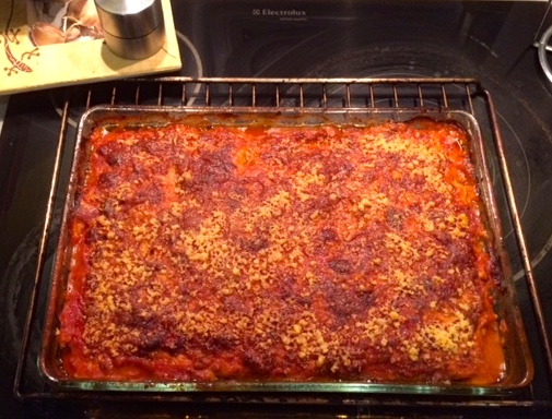 moussakaUne fois terminé, il ne vous reste plus qu’à laisser une grosse demi-heure  au four préchauffé à 180° . Puis passer à table.