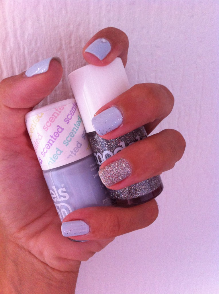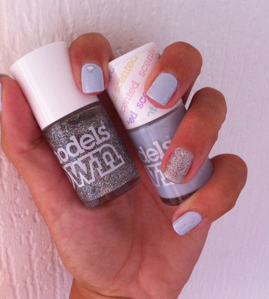 Parmi elles, les pastels de l’été que l’on a vu sur différents blogs de blopines nailistas. Ils ont la particularité d’être odorant. Les Models Own ont une odeur forte, c’est d’ailleurs à mon sens leur seul défaut, mais cette collection une fois posée, sent selon sa couleur, la banane (jaune), la pomme (vert), le raisin (violet), la fraise (rose), et la myrtille (bleu). C’est naturellement que j’ai choisi le dernier. Hin Hin!! Par simple élimination… J’ai déjà des teintes vertes et violettes, le jaune de NCLA, rose pastel pas mon truc, restait donc le bleu clair. Un bleu pastel presque gris.
