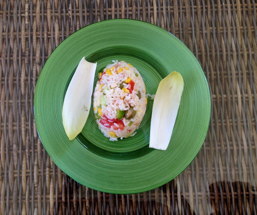 La première que je prépare est une belle salade de riz facile, rapide et colorée et pleine de fraîcheur: