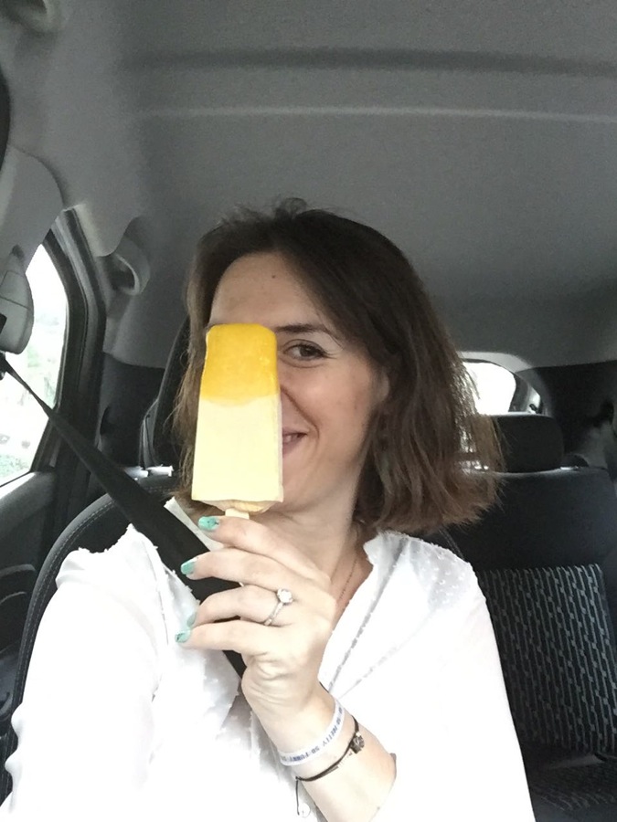 Glace: extérieur: sorbet mangue/Intérieur: lait concentré