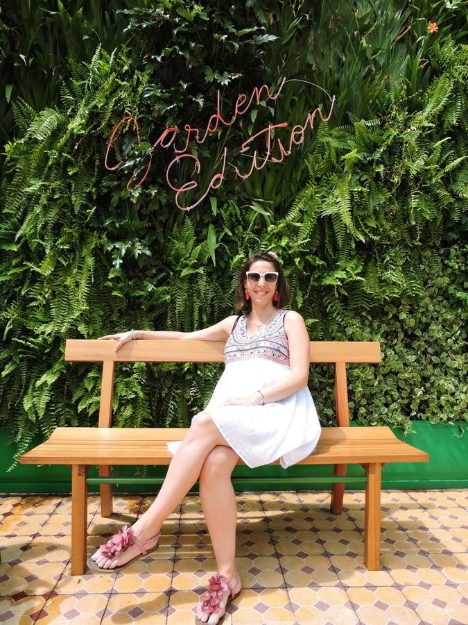 Ce jour-là il s’organisait sur ce toit une soirée Heineken, dans les couleurs de l’enseigne, la terrasse était ornée de murs végétaux, superbe!