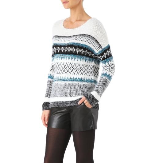 Autant j’ai des dizaines de robes autant les pulls, je suis plus difficile. La forme, la matière, l’imprimé… tous ces détails ont leur importance. Il ne faut pas, par exemple, qu’il soit trop épais, sinon j’ai l’impression que cela me rajoute de la matière, je porte peu de sweats pour cette raison. Pour la matière je fais attention depuis quelque temps à ce que le pull soit vraiment chaud et pas juste en acrylique, il faut qu’il y ait un minimum de laine, d’angora ou de mohair, des matières chaudes, de même pour les manteaux. Pour l’imprimé, j’aime bien depuis l’hiver dernier les gilets ou pulls jacquard, des imprimés et motifs qui nous rappellent la saison sans pour autant se plaquer un renne sur le ventre^^