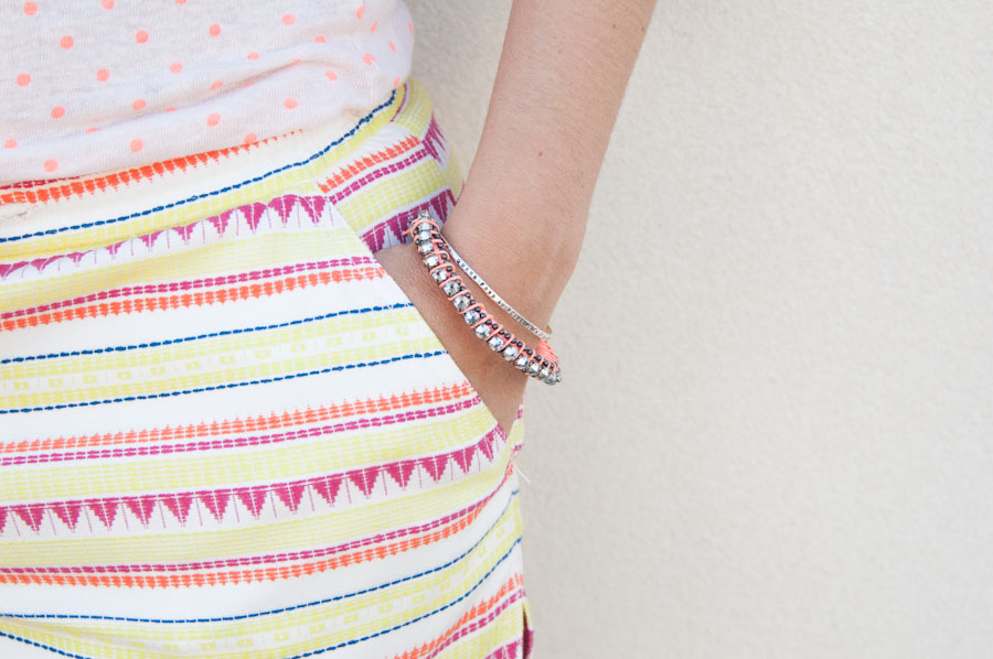 Un look que j’adore parce qu’il représente pleinement l’été pour moi, les jours de chaleur et de soleil. Je crois qu’en été on peut tout porter, tout assortir, toutes les couleurs et les imprimés. L’été c’est le moment où on peut vraiment se lever, attraper un haut, sauter dans un bas, enfiler des sandales et hop! On part à la plage!