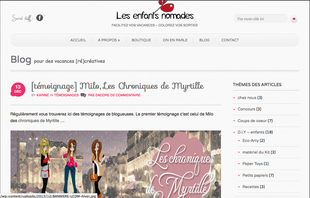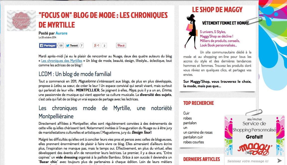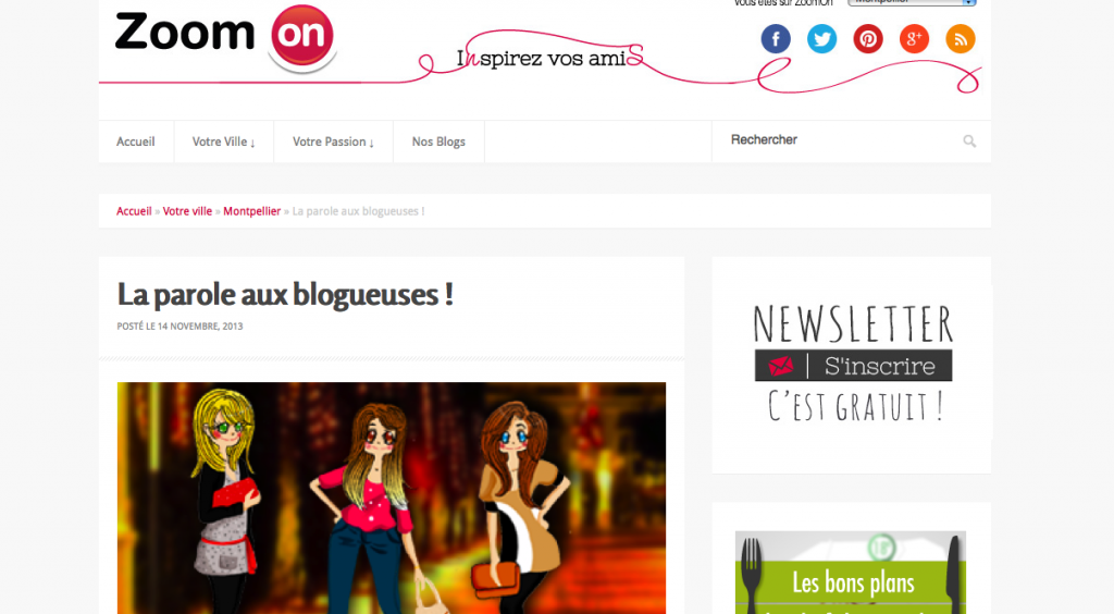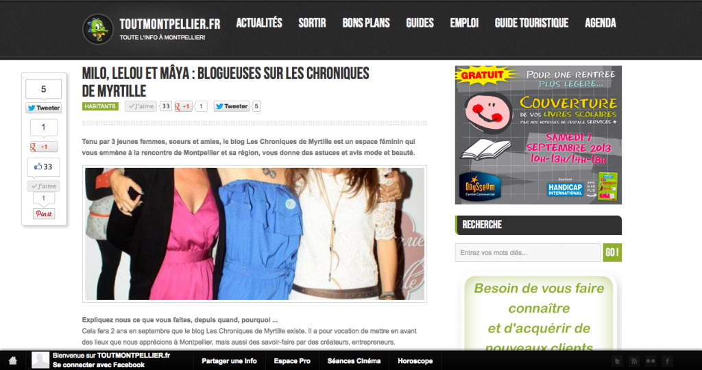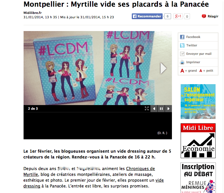 Sur le net TV Sud Septembre 2016 Bazar Chic 31/06/16 Agence Sweep juillet 2016 Maggy’ Shop – Octobre 2014 Unizic by ICM – Juin 2014 Midi Libre Montpellier – Janvier 2014 Les enfants nomades – Décembre 2013 ZoomOn Montpellier – Novembre 2013 ToutMontpellier.fr – Août 2013 Blog de Justine Loison illustratrice/graphiste – Janvier 2013 Blog by Pix’n Com – Décembre 2012 My Little Box – Octobre 2012 Xogane – Octobre 2012 By Paul Stephan, le blog de Ripauste – Octobre 2012 Trinque Fougasse, le blog – Juin 2012 Montpellier CityCrunch – Juin 2012 Partager Tweet Pin it +1