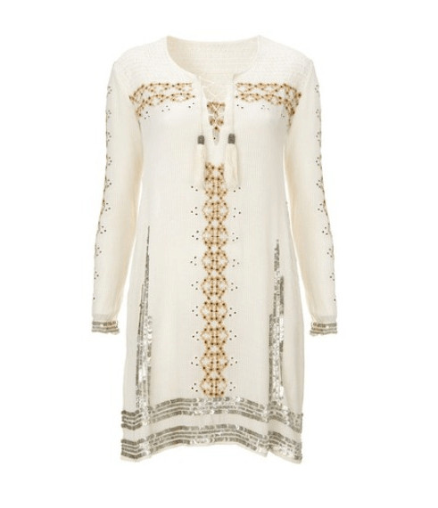 La collection est à l’image de la british, à la fois rock et sexy. On retrouve un mélange de matières et des détails chics comme des pièces brodées, des sequins ou des perles.