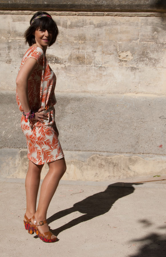 Cette robe, ce look, c’est tout ce que j’aime en été: de la couleur, des nuances, des accessoires que l’on pourra manier et remanier tout au long de la saison.